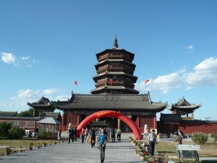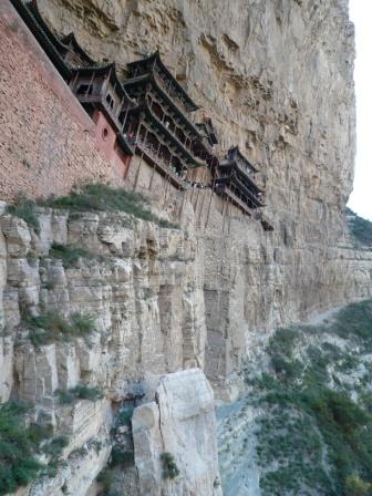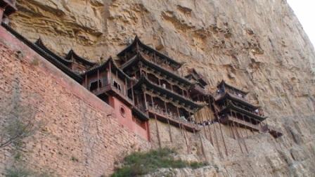(续)在去悬空寺的路上,布太说带我们去看一处自然形成的土林,离市区不远,靠近杜庄。 车停在一处高地上,下车,放眼望去,太棒了!眼前高低起伏地土林,很像电影中的大漠风光。 桑干河流经此处形成了一个湖泊,蓝色的湖水清澈透明,在阳光的照射下泛着莹光。河边还生长着一丛丛的芦苇,随风起伏。 忽然布太叫了一声,我回头看她,她指着湖对岸说原来这里立着一座土林,很像一座少女的雕像,是这里的招牌,前两个月她过来的时候还在的,这回却不见了,看来是已经倒塌了。她连声叹息,不住地说怎么才两个月没来,少女像就没了呢。之后她又指着一处说,你们看,这个像不像圣诞老人的靴子。我们顺着她手指的方向望过去,真的,太像了。我们连忙跑到跟前合影,谁知道多久之后,这只靴子又将消失无踪了呢。这些土林都是沙土自然风化形成的,土质非常疏松,日晒雨淋之下,保不准哪天就倒塌了。 顺着湖边绕到土林的制高点处,爬上去,看着形态各异的土林,似海浪般起伏的芦苇丛,碧波荡漾的湖水,还有几只野鸭子在游弋。 穿梭于几近一人高的芦苇丛中,听着风卷沙土在耳旁呼啸而过,湛蓝的天,飘忽的云,高低错落的土林沙丘,恍惚间我仿佛穿越到了某个动荡纷乱的年代,不知从哪里就会冒出一队马帮流匪之辈,展开一场刀光剑影的厮杀。发一组在芦苇丛中连续拍摄的照片吧。 放眼向更远的地方望过去,远处起伏的山脉,很像一座躺倒的佛像,不说不觉得,说了之后再看,就觉得尤其是佛头部分,卷发、凹眼、高鼻,非常形似。 山西是个严重缺水的省份,像这里能有条小河流经的村庄,相对来说还算是比较好的,至少人畜饮水和农田灌溉都可以解决,而更多的地方,就只能靠挖深井打水上来用了,相对的,这样的地方也会贫穷许多。再向前开了一段后,布太指着公路下面的一个村子说那里的人全年收入也不过千元,生活非常之贫苦。我们停车走近看,叫东圪坨铺村。 布太又指着对面的山上说,那里有个窑洞,里面住着个大爷,孤身一人,没有成过家,因为来这里参观的游客很多,如今也是网络名人了。于是我们过了公路走上去,窑洞门前的土坡上栽了许多花,顶着烈日招摇地灿烂。老大爷很热情,招呼我们随便看随便拍照。窑洞冬暖夏凉,外面艳阳高照,一进窑洞,就觉得一阵荫凉,窑洞里的布置非常简陋,墙上贴着许多照片,是来这里探访的人和大爷的合影,其中不乏外国游客,还有一份英文报纸,上面登载着老人的事。大爷指着电视机说这个是爱心车队的人送的,一共是18个人,很多东西都是别人送的。另一个窑洞里一只小狗懒洋洋地趴在地上,大爷说它要下崽崽了。虽然生活很清贫,但大爷却始终乐呵呵的,不停地说现在过得很好了,很多人关心他照顾他。我和大爷合影留念,又留下一个红包,然后和大爷告别。 车子一路驶向悬空寺,就在我昏昏欲睡之际,目的地到了。 悬空寺位于恒山脚下,在浑源县城南的金龙山峡谷的翠屏山崖壁上。该寺始建于北魏太和15年(公元491年),距今已有上千年的历史,是国内现存唯一的佛、道、儒三教合一的寺庙。该寺建筑十分奇特,在陡崖上凿洞插悬梁为基,楼阁间上下腾挪全由腾空飞架的栈道悬梯相通,背倚陡峭的绝壁,下临深谷。始建初期,最高处的三教殿离地面90米,因历年河床淤积,现仅剩58米。全寺有殿堂楼阁40间,为木质框架式结构,高低错落,转折升降,曲折迷离,寺虽不大,但巧夺天工,颇为壮观,遥望让人拍手叫绝。明代王湛初赋诗“谁凿高山石,凌虚构梵宫。蜃楼疑海上,鸟道没云中。”唐代诗仙李白醉书“壮观”二字,刻与石上。 景区的停车场停满了大小车辆,远远望去,便见到登寺的石阶处排着长长的人龙。抬头仰望,就见着凌空悬吊在千仞壁立的石崖之上的寺庙,参观的人龙有次序地缓缓行进,望之已让人心惊肉跳。为了确保安全,悬空寺大概控制着登寺的人数,必须等前面的人参观完离开了,才放后面的一批人上去。寺庙原本没有一颗钉子,后来进行过加固,但因为游客众多,现在楼梯上的钉子都被磨得非常光亮。我们排队等候了大约半个小时,便随着队伍攀登入寺。寺里部分的楼梯出入口,只能容一人通过,所以行进的速度非常缓慢。看着那狭小的通道口,我不由地猜疑着是否曾发生过体胖的游客被卡在半中间的事情呢。一边登寺,一边观景,感觉脚下是楼随人摇,再探头到扶栏外往下望,便是数十米的直立峭壁,心跳不免加速。一些胆小的游客根本不敢往下看,偏又有促狭的同伴在那里怪声叫着“我有恐高症啊”,听者不由失笑。在几个转折攀登处都有管理人员不断地提醒着人们留下脚下,也催促大家不要过长时间停留,以免影响后面的游客,所以整个参观过程还是相当有序高效的。不到一个小时,我们便看完全寺,回到了地面,依旧不住地感慨着古代能工巧匠的高超技艺。 离开悬空寺,我们去往另一个建筑古迹,应县木塔。 应县木塔始建于辽,是我国现存最古老最高大的木结构塔,风雨千载,历经地震、雷、雨、兵、火而巍然屹立, 可以称得上是我国乃至世界古建筑中的一件珍品。木塔塔高63米,共9层,因有4层是暗层,所以从外面看来,塔只有5层高。登上塔顶,可以将整个县城的景致尽收眼底。木塔除底部为石质外,全部用木头建造,各层用内外两圈木柱支撑梁架,而木柱之间以不同规格的手法相连,组成各式各样的复梁式木架。据说这座塔的承重柱和地面并不是完